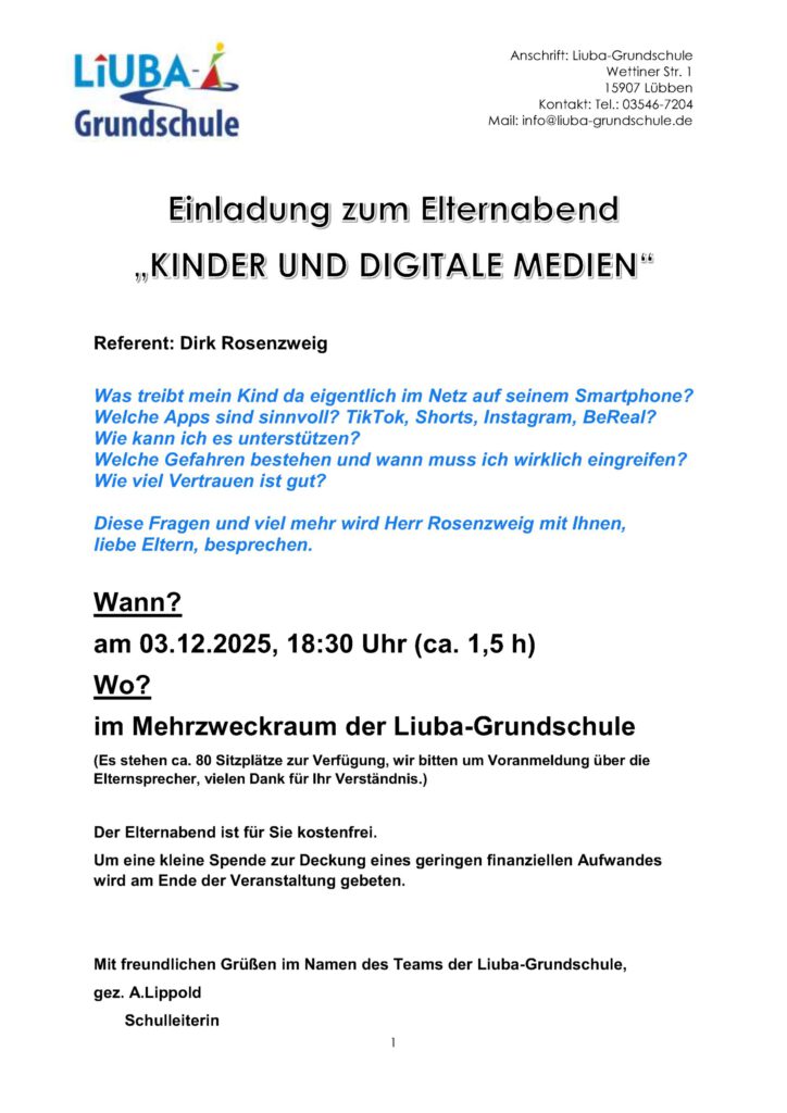 Der Termin am 07. März 2024 „Offene Schule für Eltern der Schulanfänger“ entfällt.